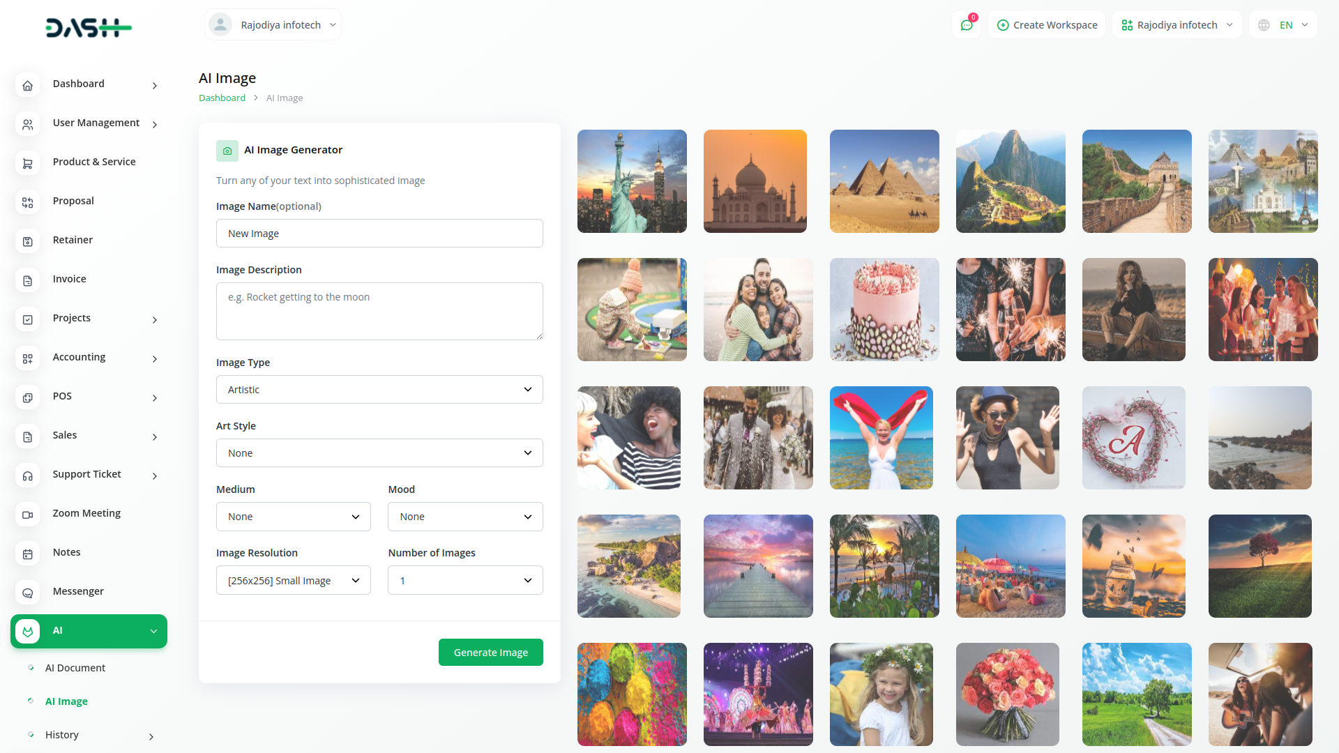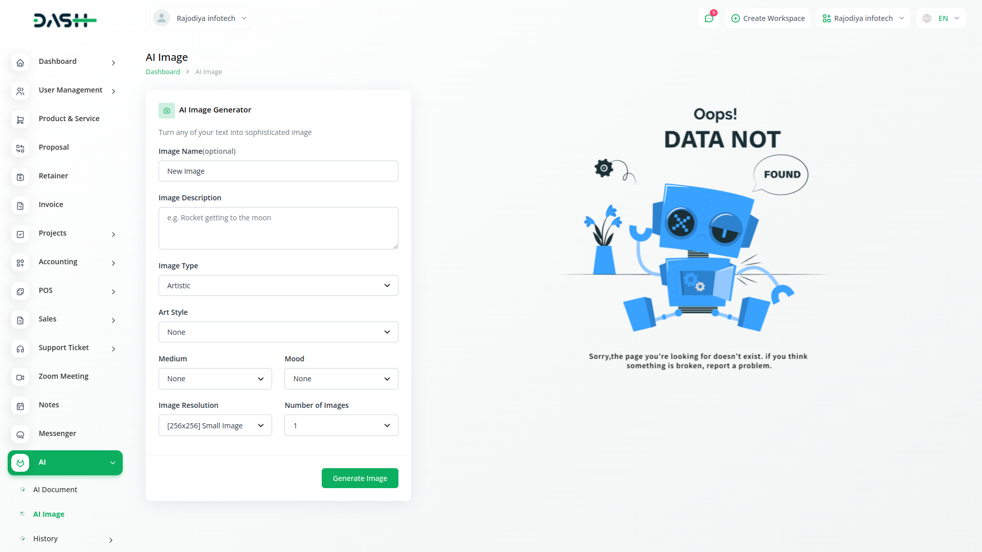 The AI Image module a powerful tool designed to assist content creators and digital marketers in swiftly generating visually captivating images. Users can provide image descriptions and select the desired image type, be it “Realistic” or “Artistic”. When the artistic image type is selected, the users will have more options to choose the art styles, color styles, and image moods. The module offers customizable options for image resolution and the number of desired image results. The final results can be saved with a customized name, downloaded, or removed by the users. Utilizing advanced artificial intelligence algorithms, AI Image transforms images into AI-generated art, enabling users to effortlessly create stunning images. This tool is particularly advantageous for individuals seeking to produce high-quality images within tight timelines, as it streamlines the process with minimal effort required.