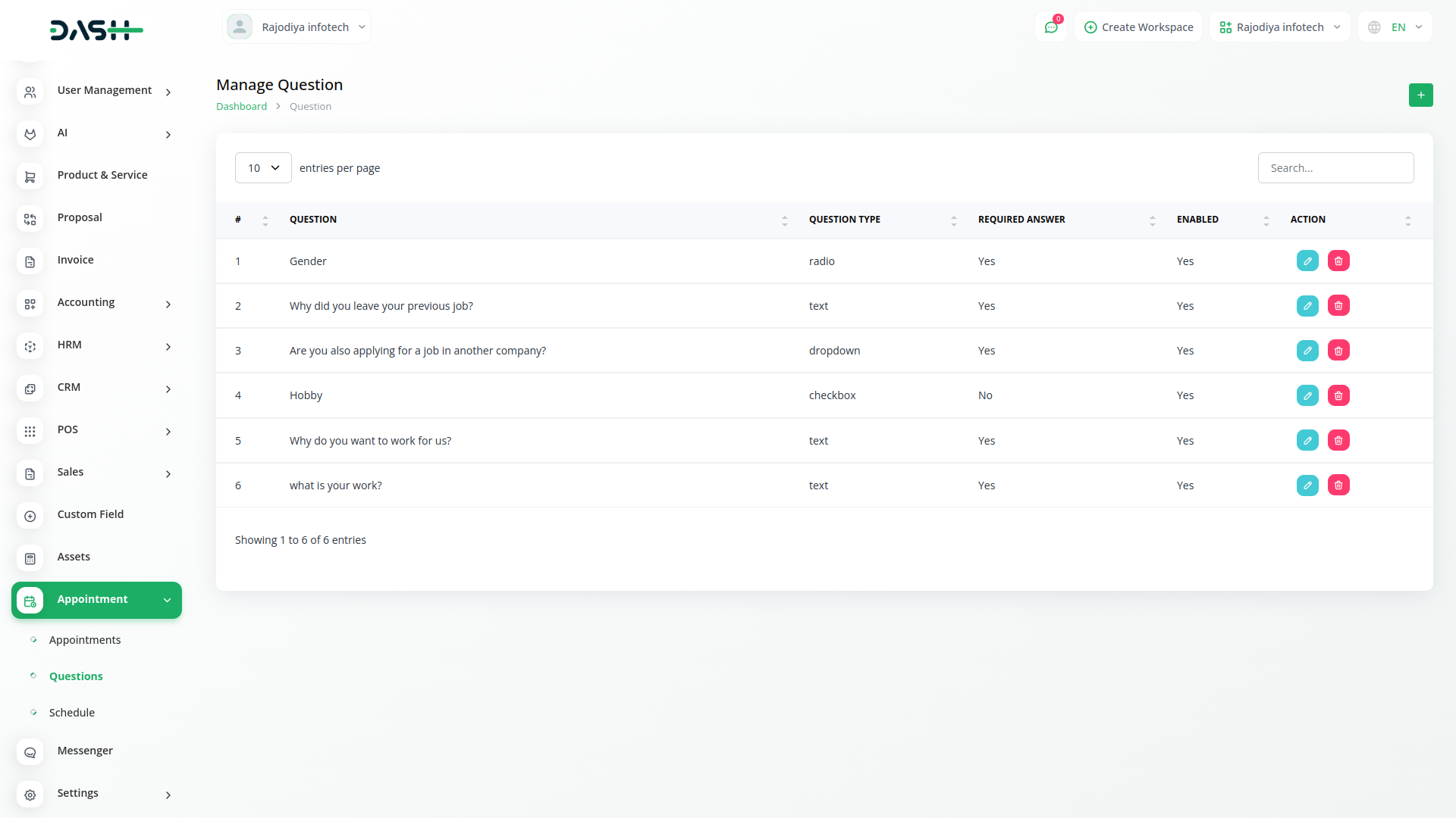 You just need to select a field and the appropriate type from the list. There are four field types available: Text, Radio, Dropdown and Checkbox You will be able to show the question without any extra effort. And you can decide whether to make that question mandatory or not. And you can also decide whether you want to keep that question in the appointment section or not.