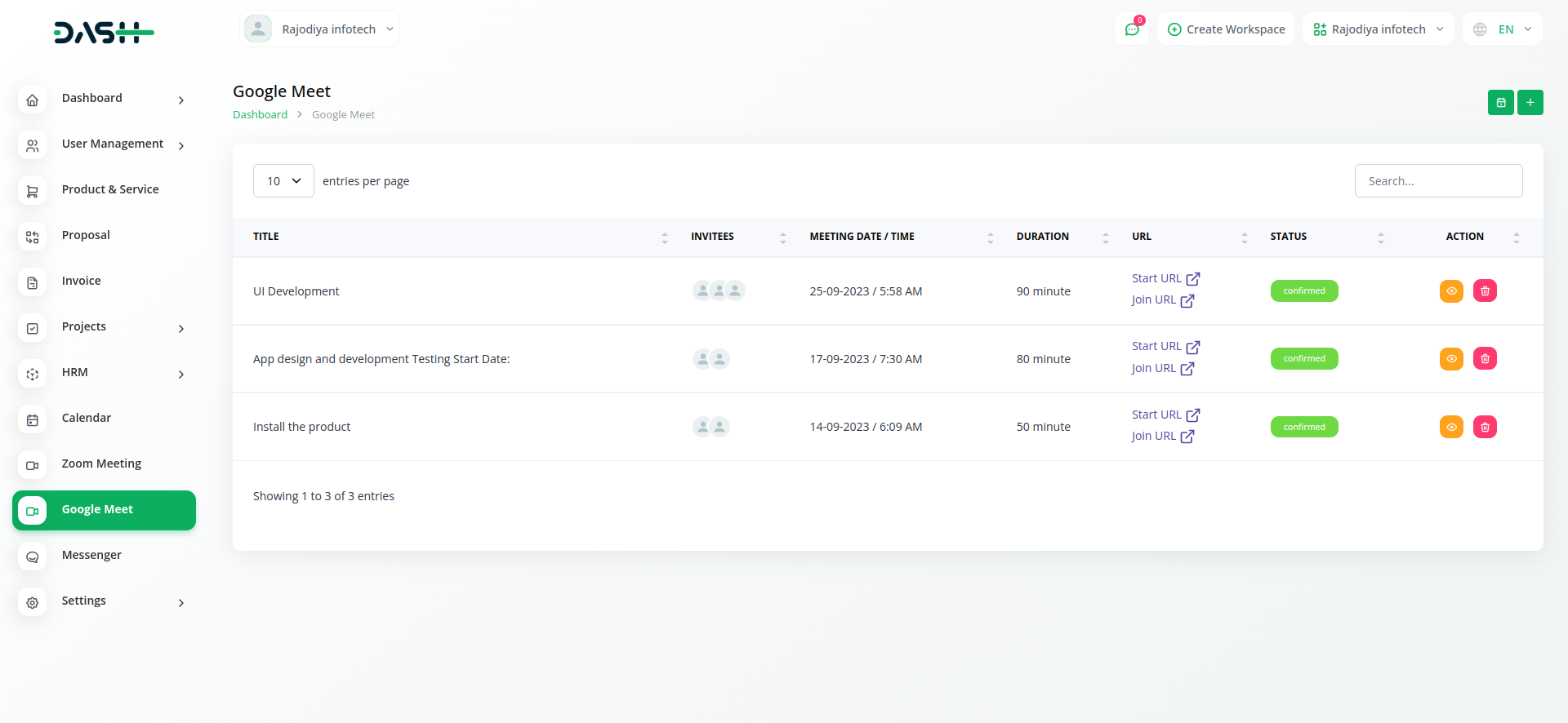 Discover the seamless collaboration of Workdo-Dash, where productivity meets innovation. Integrated with Google Meet, our platform transforms teamwork, allowing real-time collaboration and efficient meetings. Elevate your productivity and streamline your work processes with Workdo-Dash – where work meets innovation effortlessly.