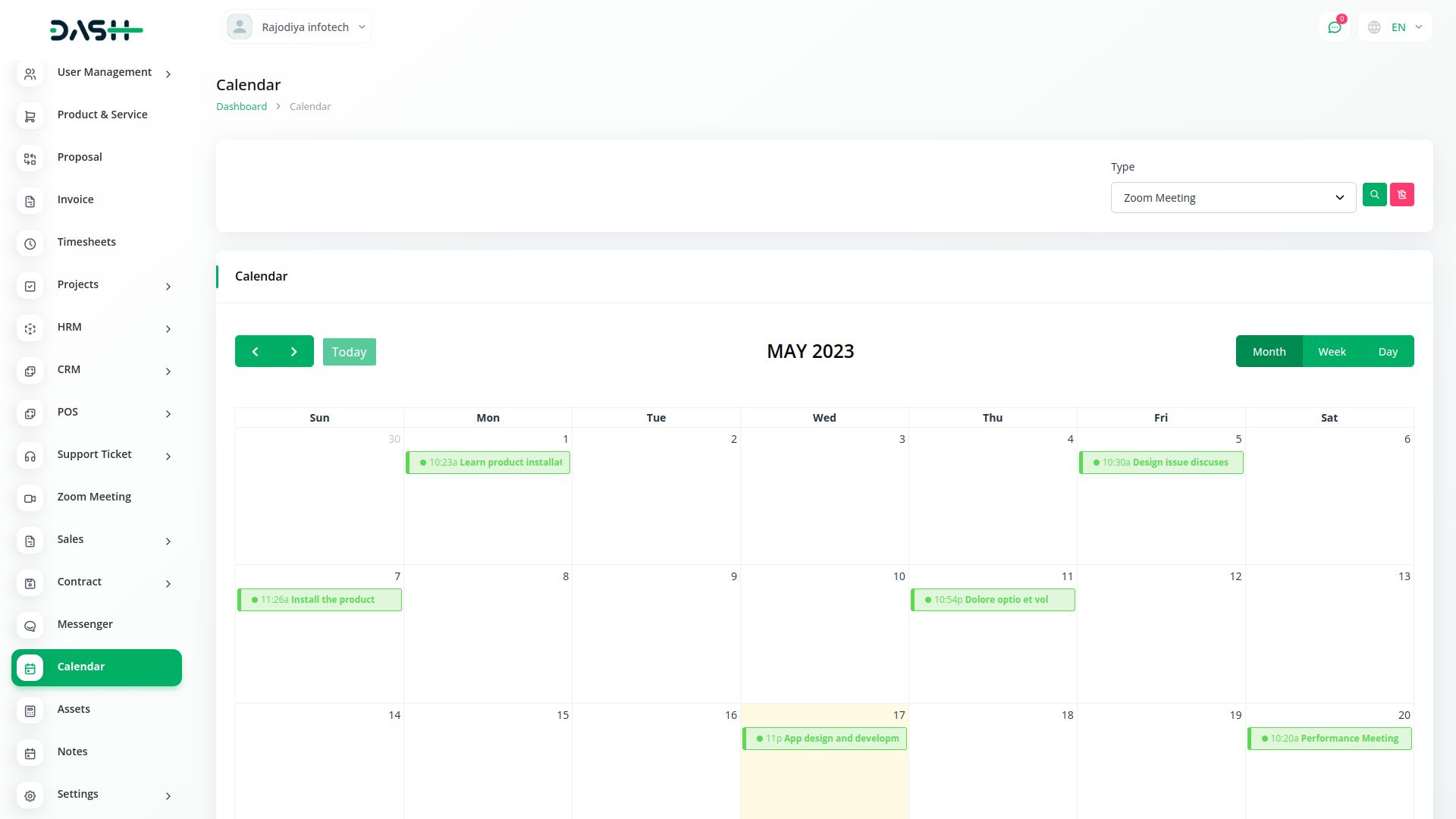 Virtual meetings are no new to us. The Zoom Integration provides a platform where you can create a zoom meeting after giving inputs of asked details like; Client, User(s), Meeting Time, and Duration, and it generates a link through which people can join the meeting. You can create, View, Start, and Delete meetings with ease.