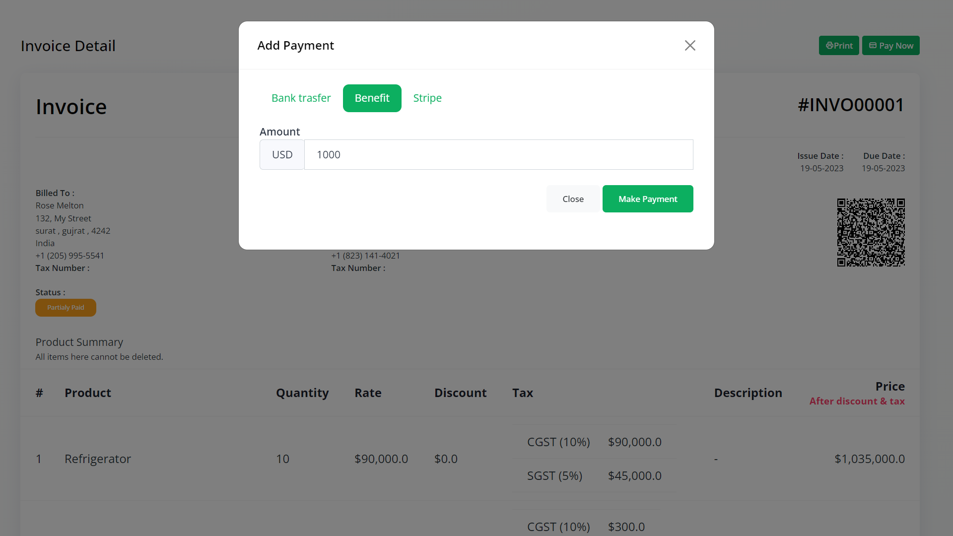 Benefit PG supports full, partial and multiple partial refunds. Note that you need to request partial refund enablement from Benefit when you sign up with them.